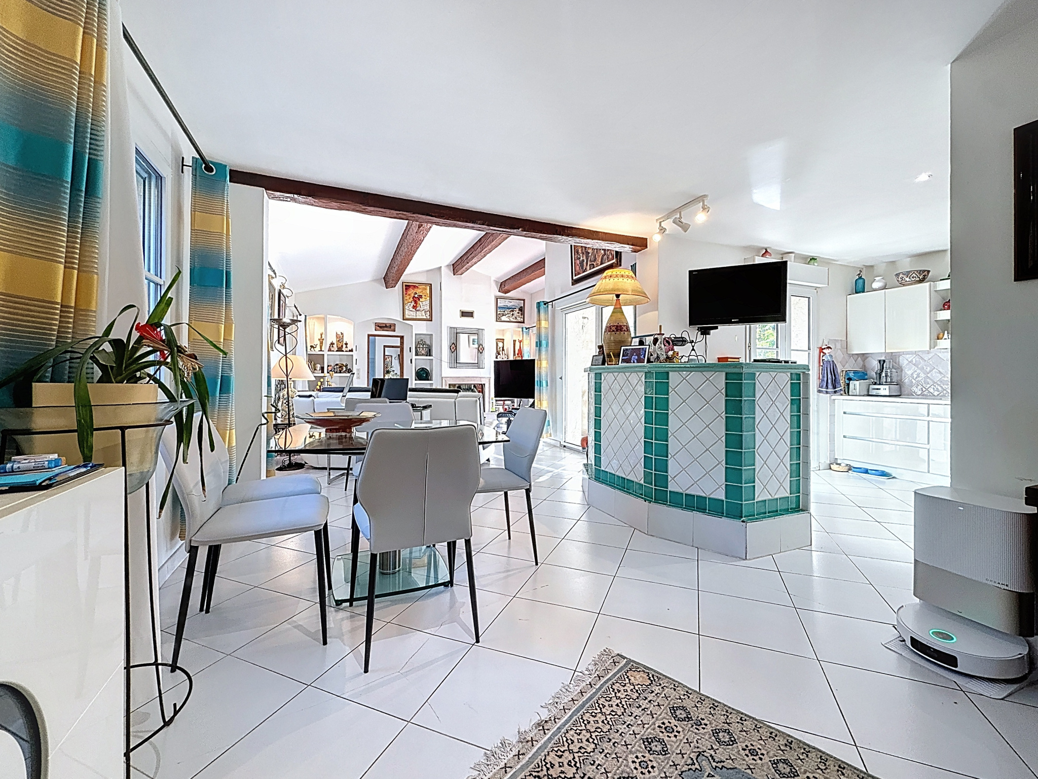 Côté extérieur, la propriété nécessite peu d'entretien. Exposée plein sud, elle propose un espace convivial agrémenté d'une piscine à débordement, de jolies terrasses et d'espaces paysagers pour profiter pleinement des extérieurs. Une cuisine d'été vient compléter l'ensemble.<br />
